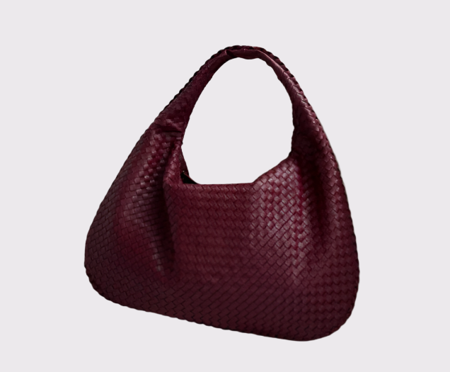 Elegantes Flechtdesign in tiefem Burgunder – stilvoll, praktisch und geräumig zugleich.